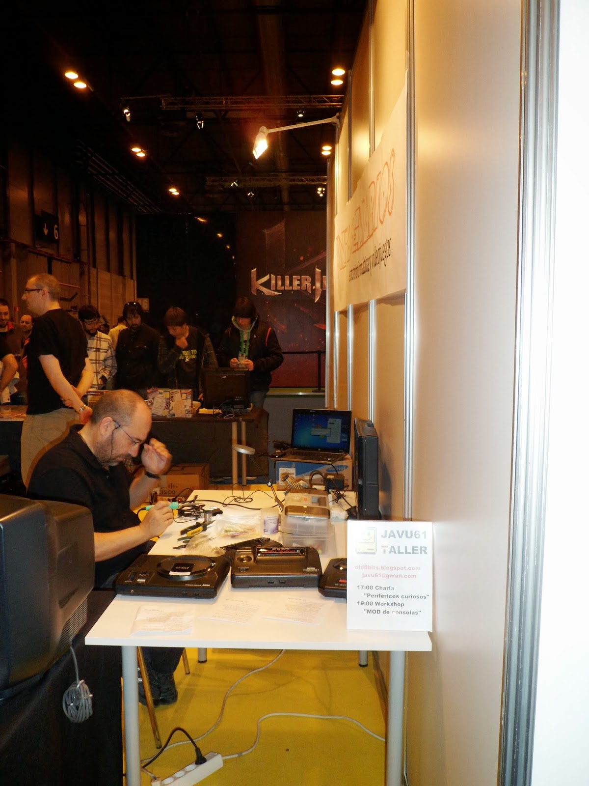 Reparación y Molificación de consolas retro. La verdad es que tuvo público, en la primera mas evidentemente, había gente que pasaba y se quedó a verla de pie, pues estaban llenos los bancos, la segunda también estaba lleno, pero con algún hueco.